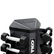 - Holds (8) pairs of dumbbells: 3 to 25 lbs