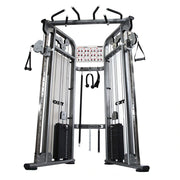 TKO's Functional Trainer features 2 shrouded stacks of 210 lbs. each with a resistance level of 1:2, a dual-roller mechanism for ultra smooth and quiet movement, 22 adjustment positions and all the accessories you need for a great workout.