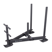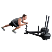 Body Solid’s GWS100 Weight Sled features a durable heavy-gauge solid steel mainframe. Along with the center weight post, the removable posts double as weight plate posts. Multiple attachment anchors allow you to attach almost any vest or belt giving this sled unmatched versatility. Vertical and horizontal hand posts offer several positions on both sides for pushing and pulling exercises.