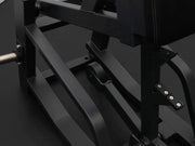 The Plate-Loaded Super Squat is designed to have a natural squatting motion, while reducing back and knee strain through a curved arc of motion. It also employs a standard counterbalance for lower starting resistance.