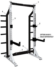 The YORK® Half Rack comes standard with a pull-up bar, bar holders, bench stringer, and more.